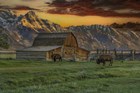 Moulton Barn At Sunrise With Bison