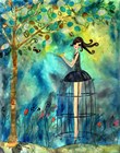 Big Eyed Girl Raining Flowers