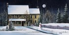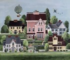 Debbi Wetzel loves to paint and she loves to share her world with her viewers. Working from her studio which overlooks the constantly changing landscapes of the Green Mountains of Vermont, she paints what she knows. She grew up in a small village, and the village life with crows in the cornfield, church steeples and pumpkins on front porch are what inspire her work. Debbi was introduced to acrylics in the 1970s, and she has found her own way around the medium. She painted on broken pieces of antique wooden boxes, Vermont roofing shingle slate, and furniture and eventually evolved into canvas originals. She uses sharp lines and bright, bold colors to define county architecture, the fall foliage, and to tell the story of the countryside that she likes to share in her paintings.