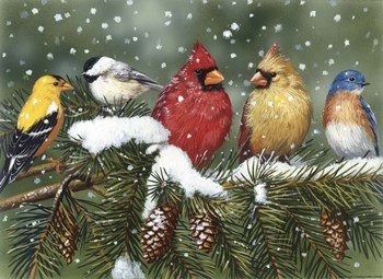 Backyard Birds On Snowy Branch