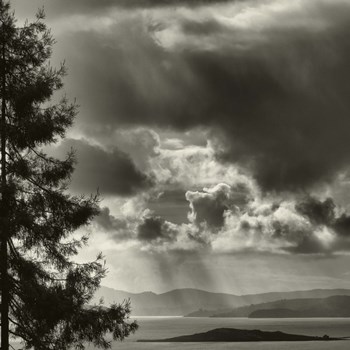 Light breaking through the clouds and onto the water