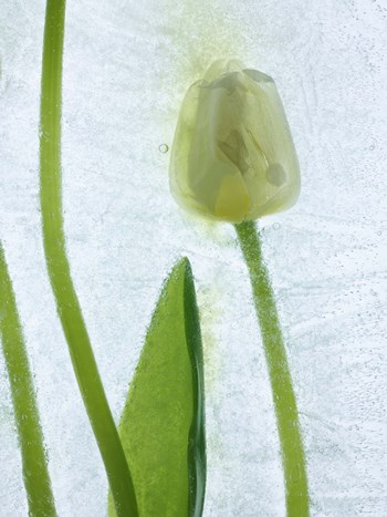 A beautiful frozen flower with closed white petals